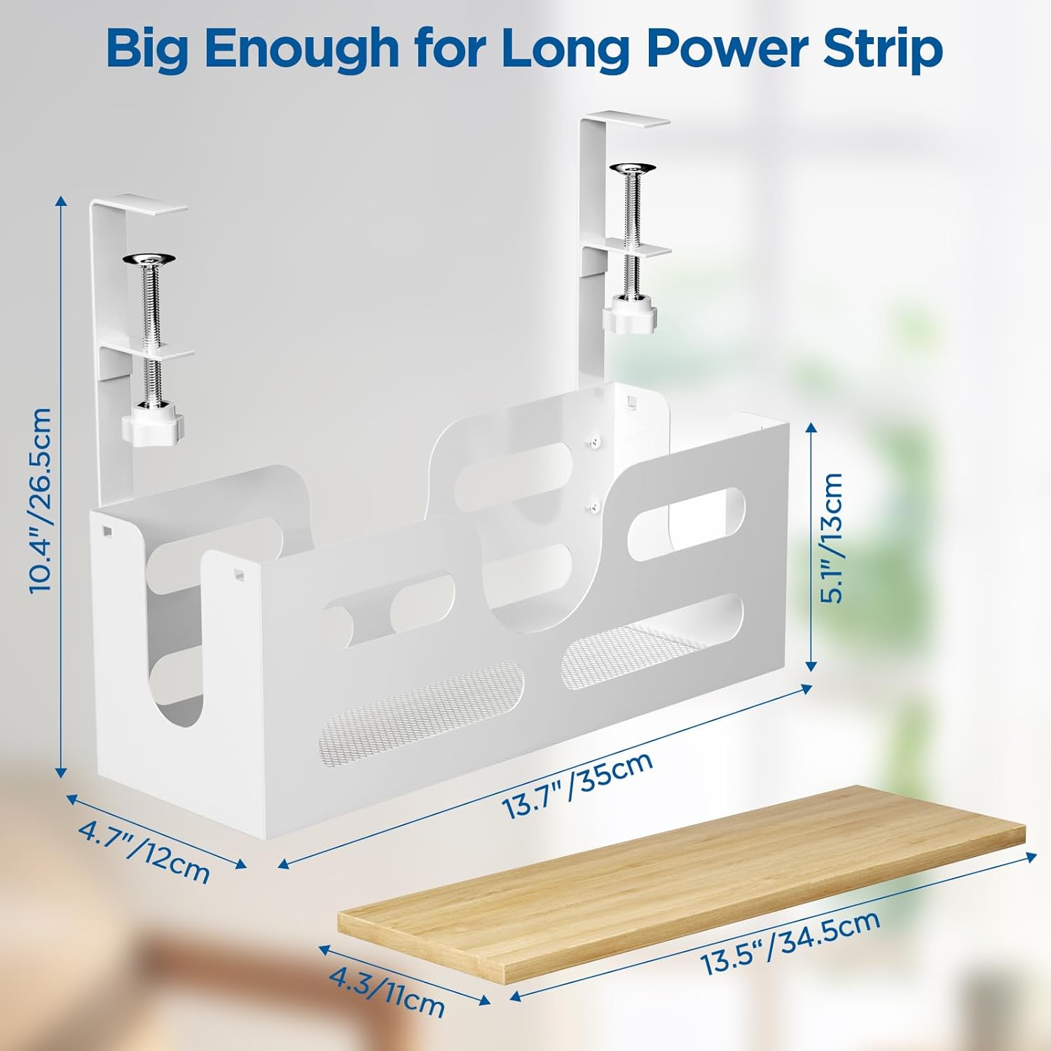 Spacious Cable Organization: With generous dimensions of 13.7”L x 4.7”W x 5.1”H, this large desk cable management tray accommodates multiple power strips, data cables, and adapters. The ample space allows for neat arrangement of all your office essentials without crowding.