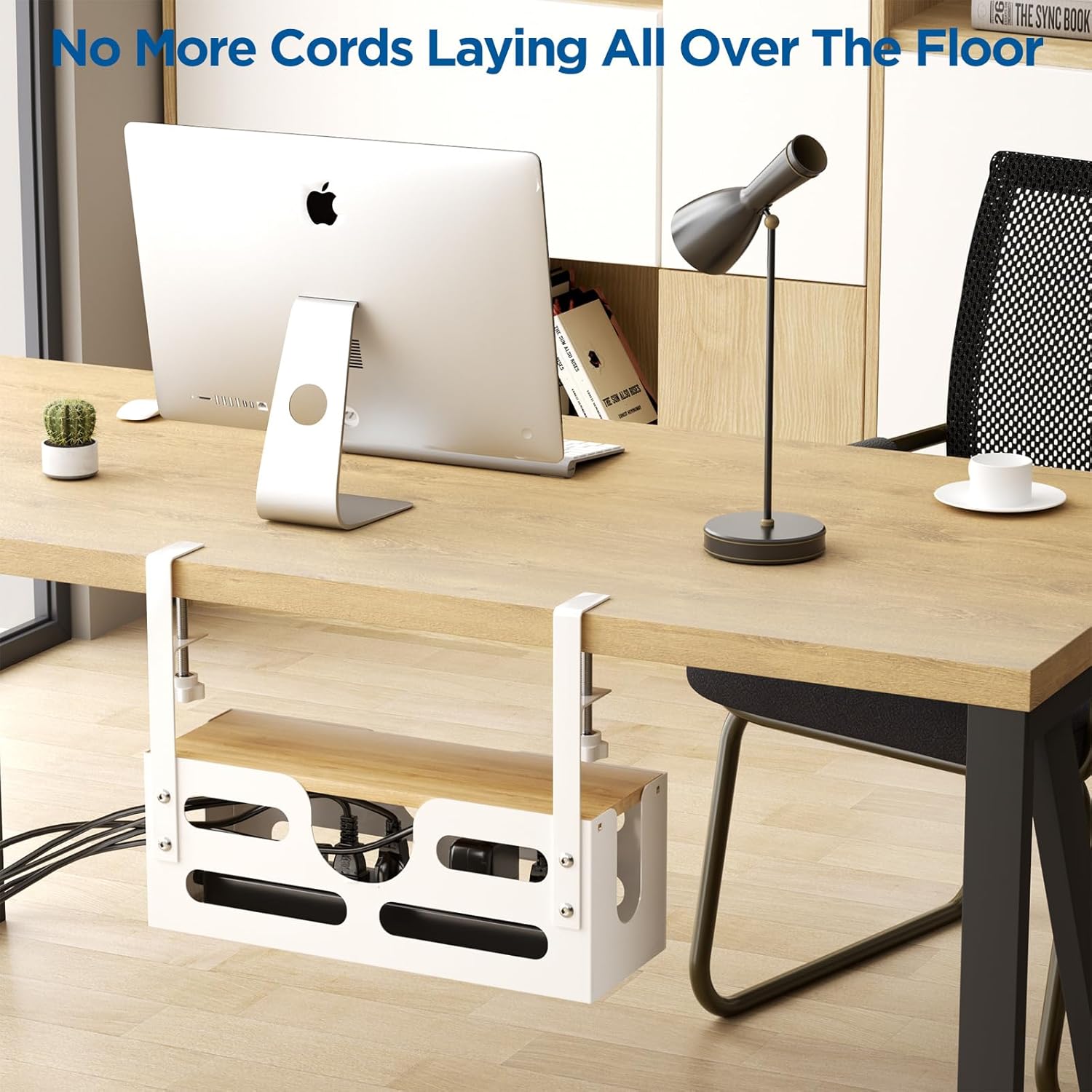 No-Drill Clip Mounting System: The under desk cable management box features adjustable clamps that securely attach to desks of varying thicknesses without any drilling required. Rubber padding protects both wooden and glass surfaces from scratches, making installation quick and damage-free.
